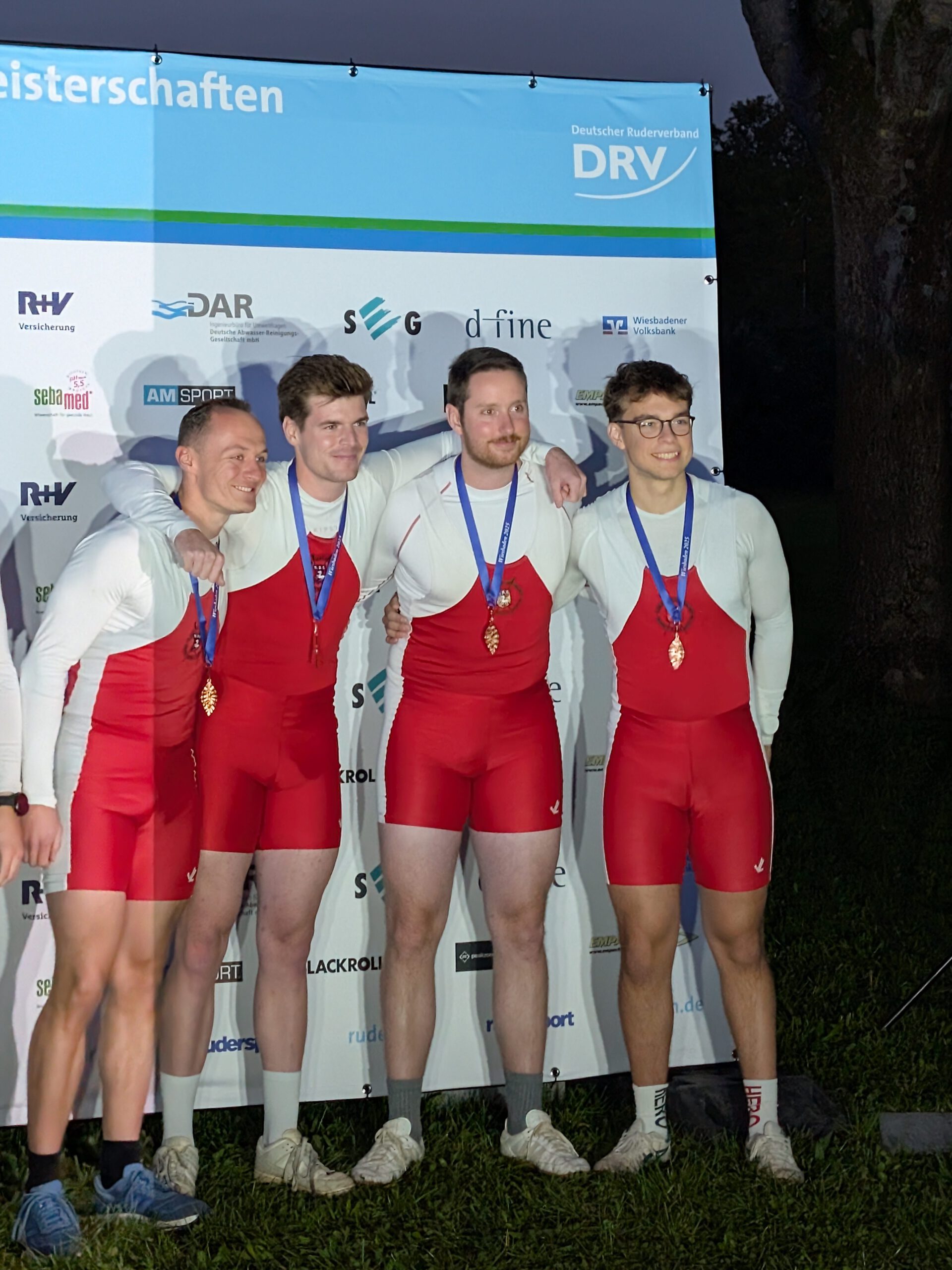 Auch der Männer-Doppelvierer mit Simon Höck, Valentin Lösch, Friedrich Romberg und Henri Deutscher zeigte eine überzeugende Leistung. Nach einem zweiten Platz im Vorlauf und einem klaren Sieg im Hoffnungslauf zog das Boot ins Finale ein. Dort lag die Mannschaft zur Streckenhälfte noch auf Rang vier, konnte sich jedoch im zweiten Teil des Rennens steigern und erkämpfte sich die Bronzemedaille.