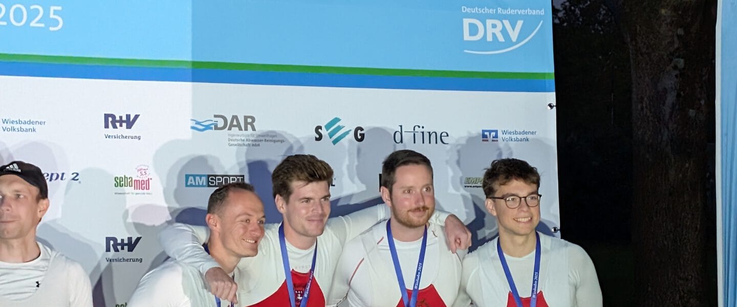 Am Sonntag folgten die Rennen von Jule Lettau im U17-Bereich. Im Vierer mit Steuerperson ging die Mannschaft nach einem souveränen Vorlaufsieg als Favorit ins Finale. Bereits zu Beginn des Rennens setzte sich das Boot deutlich ab und konnte den Vorsprung im weiteren Verlauf kontinuierlich ausbauen. Nach einem starken Endspurt fuhr das Team einen klaren Start-Ziel-Sieg ein – der Meistertitel war verdient. Im Achter fehlte am Nachmittag etwas die Durchschlagskraft; das Team belegte im engen Feld Rang vier.